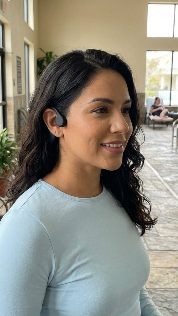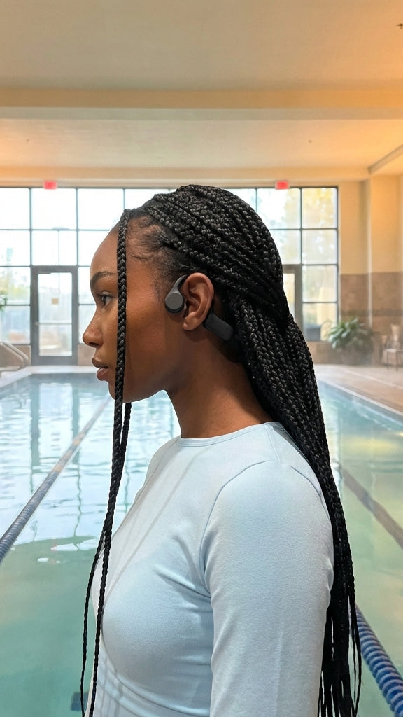 AquaAudio delivers powerful, crystal-clear sound without blocking your ears. Using advanced bone conduction technology, it keeps you aware while you swim and train. Push your limits with audio that moves with you.